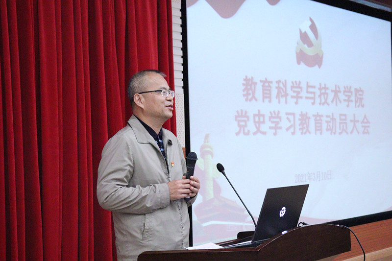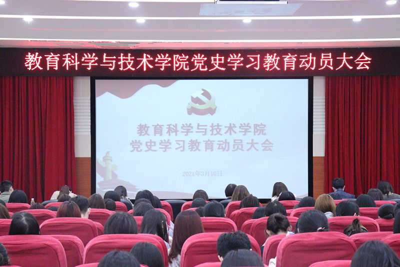 为贯彻学习习近平总书记在党史学习教育动员大会上的重要讲话精神,落实省教育工委和学校党委关于党史学习教育的工作要求,深入推动党史学习教育在学院取得实效,教育科学与技术学院党委于3月10日在白云校区第三教学楼104多功能报告厅召开党史学习教育动员大会。学院领导班子成员出席会议,各学生党支部书记、专职辅导员和全体学生党员、团学干事、各班班委及学生助理参加会议。动员大会由学院党委副书记吴水爱主持。