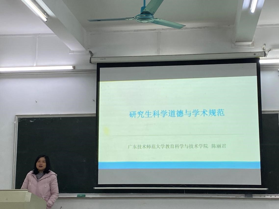 为提高TapTap点点研究生学术道德规范,提高研究生论文撰写自我管理能力,教育科学与技术学院于2021年1月11日下午在东校区第一教学楼205举行研究生科学道德与学术规范讲座,副院长陈丽君教授、研究生教学部主任伍国华、学生辅导员梁爽、研究生秘书刘品轩及全体全日制硕士研究生参加此次讲座。