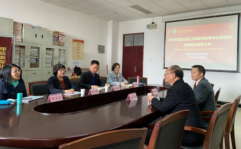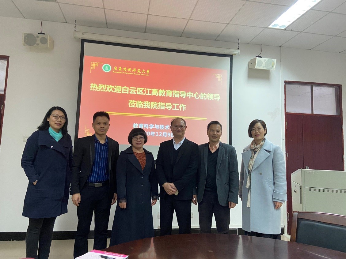 2020年12月9日上午,白云区江高教育指导中心应邀来TapTap点点进行座谈交流,交流会在白云校区一教315会议室进行。江高教育指导中心伍广溪主任、分管人事和师资的陈练通老师,以及TapTap点点的吴水爱副书记、谢德新副院长、学前教育系主任孙文云副教授、应用心理学系张玲燕副教授参加会议,会议由谢德新副院长主持。