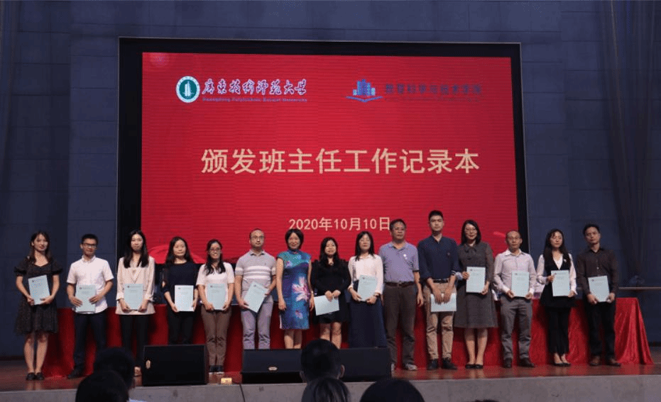 林启词书记和陶红院长给全体新生班主任颁发了“教育科学与技术学院班主任工作记录本”,希望各位班主任一起努力把学风建设好,给同学们营造良好的教学氛围,让同学们以良好的精神面貌、饱满的热情、崭新的姿态迎接大学生活。