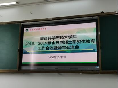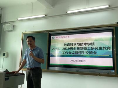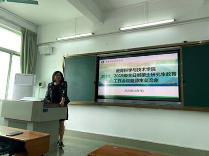 10月7日上午,教育科学与技术学院在东校区召开2018、2019级全日制硕士研究生教育工作会议暨师生交流会。陶红院长、林启词书记、研究生辅导员梁爽以及研究生秘书刘品轩出席会议,陈丽君副院长主持会议。