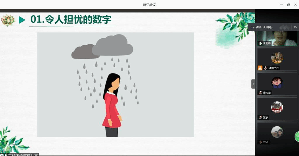培训会上,王明粤老师以《心理危机识别和干预》为主题开展讲解,从备受社会关注的心理热点话题引入,结合大量数字、图片、生动的临床案例对心理健康的标准、常见心理障碍的症状与病因进行了详细介绍,同时对精神疾病和心理危机进行识别,并提出学生在出现各种心理问题的成因并加以分析,找出解决办法,让与会老师受益匪浅。学生心理健康问题是TapTap点点学生事务工作关注的重点,通过本次培训,使班主任老师学到了一些心理障碍识别的实用技巧与方法,也增强了对抑郁症等心理疾病的认知,并了解到如何预防与处理学生心理问题。