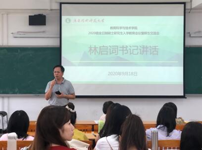 9月18日上午十时,教育科学与技术学院2020级全日制硕士研究生新生入学教育会议暨师生交流会在白云校区第三教学楼414室举行。学院党委书记林启词、院长陶红、学院党委副书记吴水爱、副院长陈丽君、副院长吴天生、副院长谢德新、研究生教学部主任伍国华、硕士研究生导师孙文云、研究生辅导员梁爽、研究生秘书刘品轩及全体全日制硕士研究生参加了会议。会议由陈丽君副院长主持。