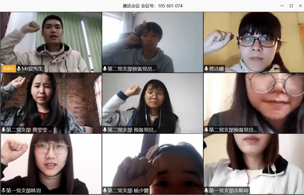 吴老师在总结讲话时说,这场没有硝烟的战“疫”是一次鲜活而深刻的生命课、思政课、党课、青年课、哲学课。希望各位学生党员坚持一往情深、不忘初心,深刻学习领会习近平总书记系列重要讲话精神,坚持以人民为中心的发展思想,坚持把打赢两场战役、夺取两个胜利作为践行初心使命、体现责任担当的试金石,深入学习贯彻《习近平总书记给北京大学援鄂医疗队全体“90后”党员回信》精神,让青春在党和人民最需要的地方绽放绚丽之花。此外,他还特别叮嘱即将毕业的学生党员,要保质保量完成毕业论文等相关毕业工作,在求职就业的同时要确保人身健康卫生安全,劳逸结合,要继续加强自身政治思想理论学习,为今后的人生奠定坚实基础。会议结束后,全体党员在吴老师带领下通过视频形式重温入党誓词,铭记心中最纯粹的入党动机,不忘初心担使命,与国携手共前行。