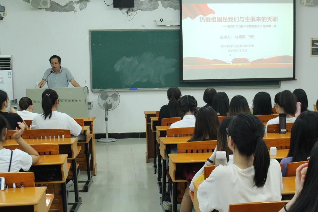 再过几天,就是伟大的中华人民共和国成立70周年,这是中华民族最光辉灿烂的日子。为了加强同学们意识形态教育工作,林书记强调了我们必须热爱社会主义中国、热爱伟大的中国共产党、高举习近平新时代中国特色社会主义思想的伟大旗帜。牢固树立中国特色社会主义道路自信、理论自信、制度自信、文化自信,确保党和国家事业始终沿着正确方向胜利前进。最后,林书记指出,大学生要肩负起实现中华民族伟大复兴中国梦大使命,不辜负伟大的新时代。