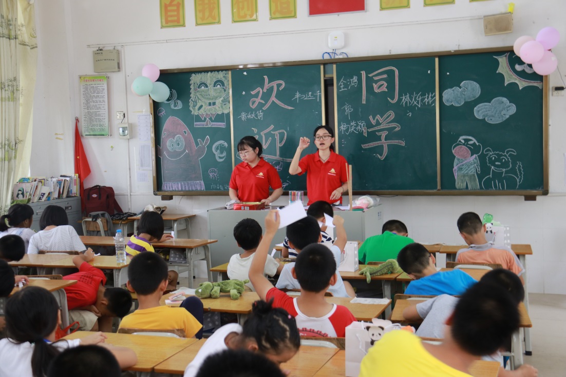 下午两点,上课铃打响的时刻,我们的30位小朋友也已经端坐在教室中,等待着新老师们带来的有趣课程。下午的班会课和折纸课中,孩子们的笑脸和积极举起的小手,是队员们上课的动力。