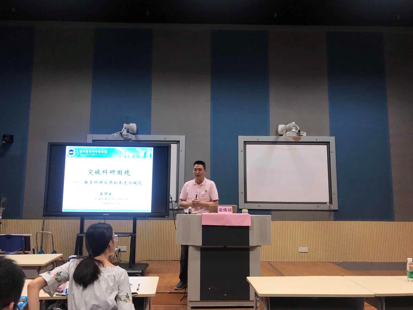 《教育发展研究》资深编辑翁伟斌研究员,围绕着“突破科研困境——科研成果的表述与规范”的主题,阐述科研之旅的不同心境,结合多年的编辑经验,分享了如何选择投稿刊物并分析刊物的风格,以提高稿件录用的概率。他强调,文章的五种写作类型以及“什么人写什么文章”“什么文章投什么类型的刊物”的观点颇具启发意义。