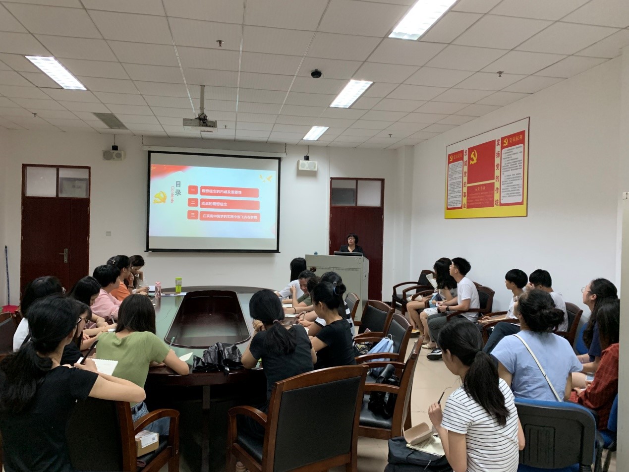 吴水爱副书记作了题为《坚定理想信念,放飞青春梦想》讲座,她用生动的言语讲述理想信念,并引申出马克思主义的正确性,希望同学们用习近平新时代中国特色社会主义思想武装头脑,用马克思主义来观察时代、解读时代、引领时代。