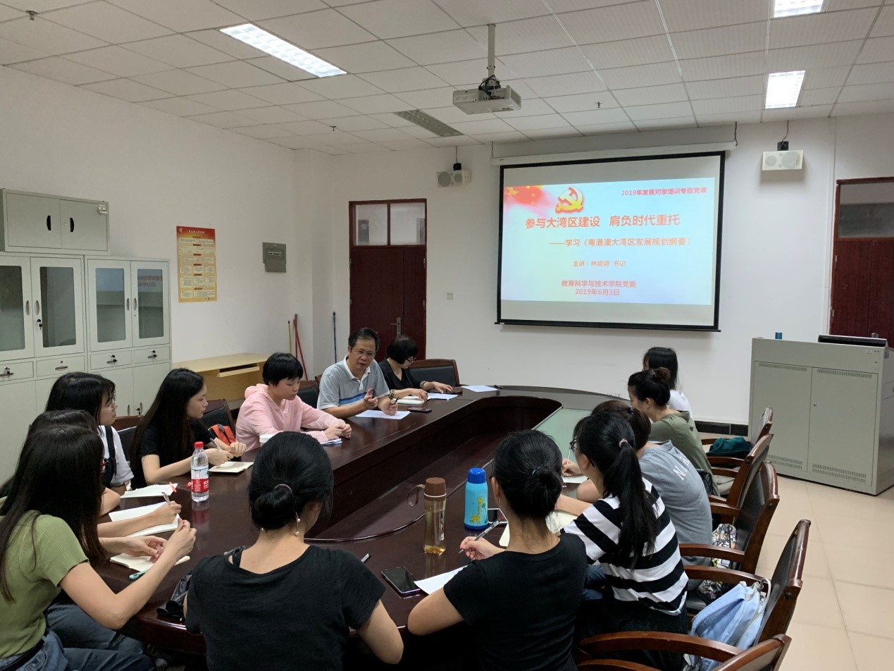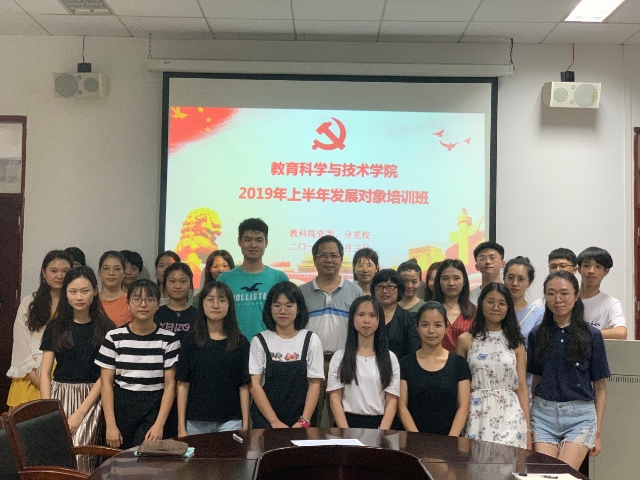 6月3日晚,教育科学与技术学院于白云校区一教315会议室举行2019年上半年发展对象培训班。学院党委书记林启词,党委副书记吴水爱,辅导员吴晨阳及研究生、本科生共25名发展对象参加了培训会议。
