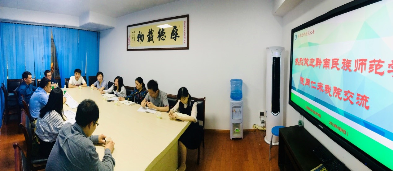 2019年4月8日,黔南民族师范学院一行7人在计算机与信息学院党委书记王观玉,院长李明江的带领下来TapTap点点调研教育硕士(现代教育技术)专业的学科建设、研究生培养与实验室建设等工作。TapTap点点陈丽君副院长和教育技术学系主任赵玉老师以及研究生教学部主任谢德新老师,研究生秘书李伶俐老师接待了远道而来的客人,并就相关问题进行了深入的交流。