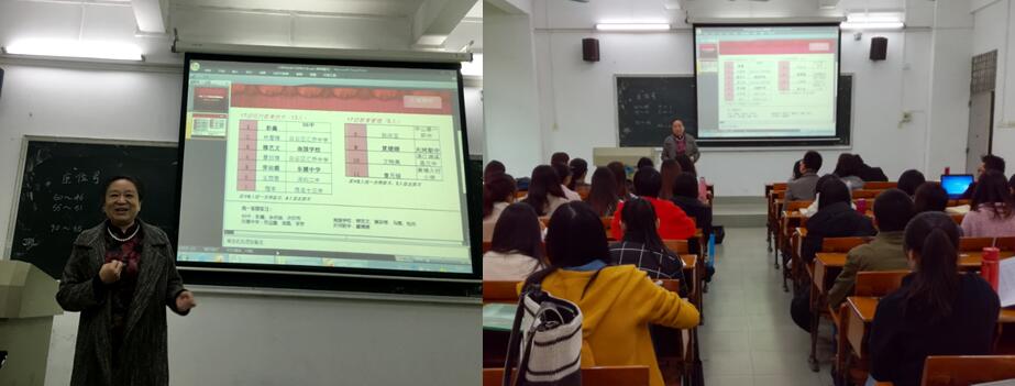此次实习一共有广州市东圃中学、广州市第八十六中学、广州市南国学校、广州市天河职中、深圳市二中、中山一职等十个实习点,学院共派出实习学生18名,其中教育管理专业的同学5名,现代教育技术专业的同学13名。每个实习点的代表向老师们声情并茂地介绍了自己的实习情况,并通过详实生动的PPT向大家展示了为期20周的实习成果。展示的内容包括对实习点情况的基本介绍、工作内容、听课和授课情况、参与活动及项目介绍、实习反思与总结等。17级同学们在回顾实习经历的同时,也让18级的同学对下一步的实习工作有了初步认识,从而吸取一些宝贵经验。