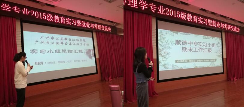 之后,各实习小组做了实习总结汇报,学生们详细介绍了在实习过程中所了解到的实习单位的基本情况、所在实习单位心理健康教育开展的现状等一般情况,并总结了自身在实习过程中的实践经验,介绍了在实习过程中的实践经验,包括具体的课程设计、授课、课外团体辅导、课外活动设计、学生个体心理咨询等活动。最后,学生们对自己在实习过程中的收获进行了总结,大家普遍认为实习的经历对师范生接下来的就业有非常重要的意义。