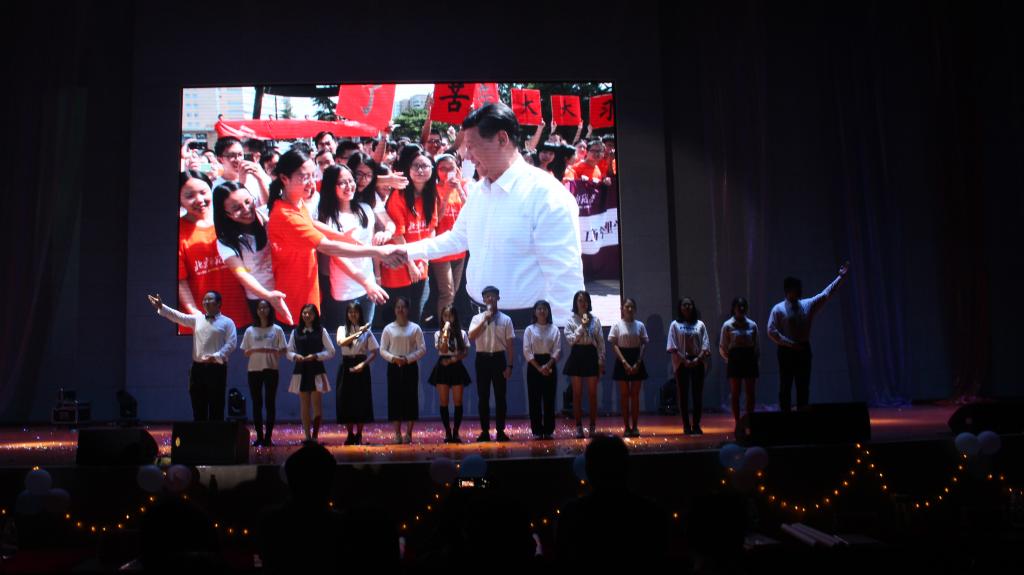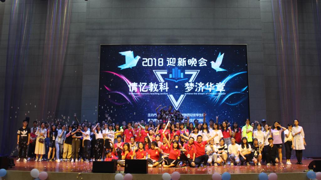 在不断的掌声与喝彩声当中,节目逐渐走向了尾声,但惊喜总是突然来临的,屏幕上的18级助班们用他们真诚的话语向新生们表达了他们的深厚情感与对新生们未来的祝愿:愿18级新生们踏着青春的步伐,不断学习进取,扎实理论功底,创新方式方法。希望他们不负习近平总书记对青年学子的殷切嘱托,爱国,立志,求真,励行,踏着新时代的春风,为实现中华民族的伟大复兴的中国梦不懈奋斗。本着教科之心,奏响梦济华章。最后晚会在TapTap点点团学所有工作人员的大合唱《夜空中最亮的星》中圆满拉下了帷幕。