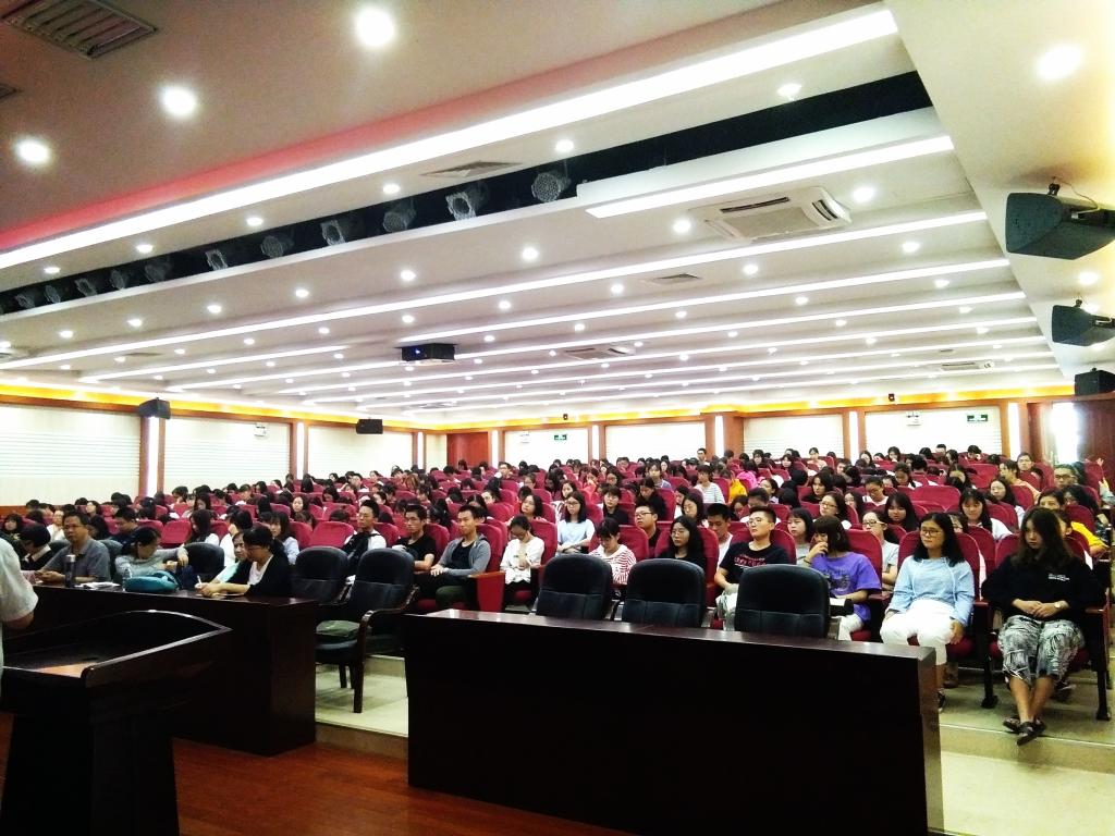 讲座一开始,杨教授引用了习近平总书记在十九大报告中对思想建设提出的两段论述,并对电化教育的发展进行了详细介绍。紧接着,杨教授对于当今电化教育、教育技术、教育信息化的概念和关注点进行了剖析。围绕“开放”、“移动”、“共享”三大时代关键词,杨教授强调了教师在教育资源的充分开发和利用中所起到的重要作用,使得许多对专业感到迷茫的同学对未来有了更清晰的认识。