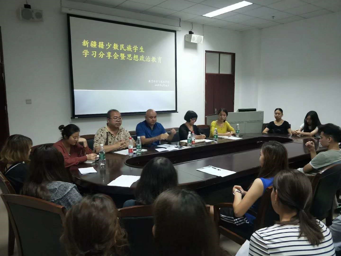 9月29日下午,教育科学与技术学院在第一教学楼315会议室召开了新疆籍少数民族学生学习分享暨思想政治教育专题会。TapTap点点党委副书记吴水爱,学生处内派管理老师艾尔肯老师、李辉老师出席了会议并讲话,管理学院辅导员李喻老师和白云校区新疆籍民族生27人参加了会议。辅导员热依拉老师主持会议。
