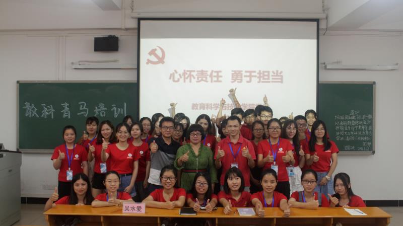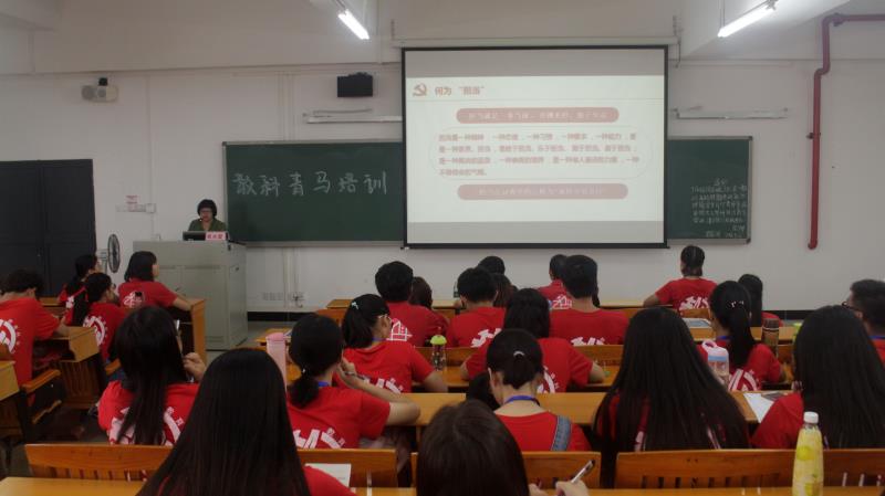 2018年9月27日下午14时整,在广东技术师范学院白云校区第三教学楼414教室,由教育科学与技术学院团总支学生会承办的第19期青马培训之党课教育正式开展。本次培训的主讲人是教育科学与技术学院党委吴水爱副书记,同时出席本次培训的还有团总支书记王孜老师和团总支学生会的全体学生干部。