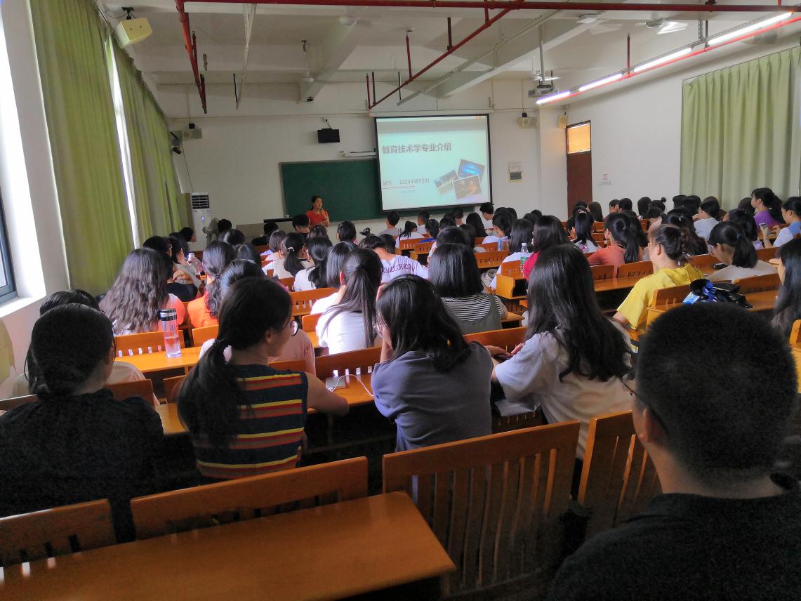 9月8日,TapTap点点2018级教育技术学专业本科生专业教育在白云校区二教302室举行。专业教育由教育技术学系主任赵玉老师主持开展,2018级教育技术学专业全体新生、助理班主任、学生会干部等参与。