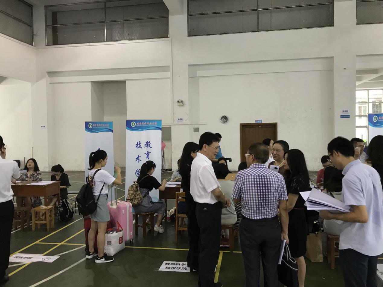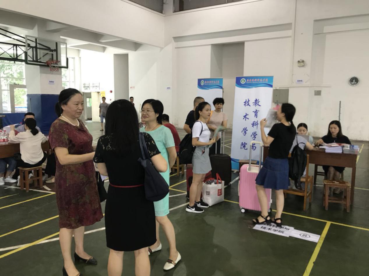 2018年9月6日上午,教育科学与技术学院2018级全日制研究生进行注册报到,院长陶红、副院长陈丽君亲临报到现场慰问迎新工作人员并详细了解新生注册报到的情况。