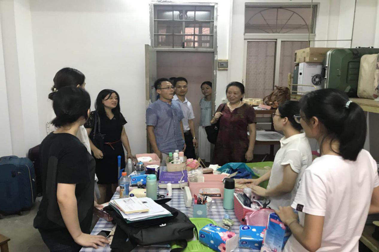 9月6日下午,院长陶红、副院长陈丽君、班主任许成果、研究生教育教学部主任谢德新、研究生教学秘书李存园、李伶俐、辅导员梁爽以及两位老生代表徐文梁和张玮桐对18级全日制研究生新生宿舍进行走访。教科院领导班子一行仔细查看学生的学习生活条件并与新生面对面亲切交流。(通讯员:梁爽)