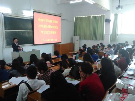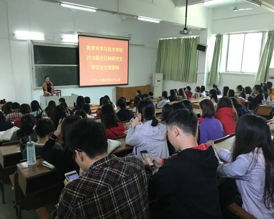 3月22日下午,教育科学与技术学院2018届全日制硕士学位论文预答辩在校本部一教8楼举行。预答辩委员由陶红院长、任平副院长、陈丽君副院长、吴天生副院长、苗素莲教授等十二位校内专家学者组成。研究生处陈泳竹副处长应邀出席答辩会,2018届职业技术教育学、教育管理、现代教育技术三个专业的33名全日制毕业生参加本次预答辩,2016级、2017级60余名全日制研究生全程观摩。