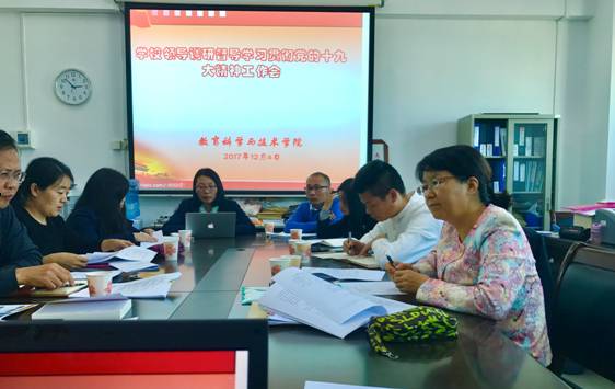 前一段时间,学院党委通过召开党委全委(扩大)会议,印发了学习贯彻党的十九大精神的通知和方案;传达学习了广东省传达贯彻党的十九大精神大会精神和全省教育系统传达学习贯彻党的十九大精神视频会议精神;学院各层面召开了会议,对学习宣传贯彻党的十九大精神作了部署安排;各级党组织、广大党员干部主动对标党的十九大精神,深刻学习领会习近平新时代中国特色社会主义思想的精神实质和丰富内涵,把党的十九大提出的新理念新思想新战略贯彻落实到学院改革发展的具体工作中,取得了初步的工作成效。学习党的十九大精神是一个逐步深化的过程、是一项长期的政治任务。我们要全面认识党的十九大取得的一系列重大成果,深刻把握十九大对我们党在新时代开启新征程、续写新篇章的重大现实意义和深远历史意义,推动十九大精神学习宣传贯彻往深里走、往实里抓。全面准确领会党的十九大精神实质,坚持用习近平新时代中国特色社会主义思想武装头脑,指导实践,推进工作。