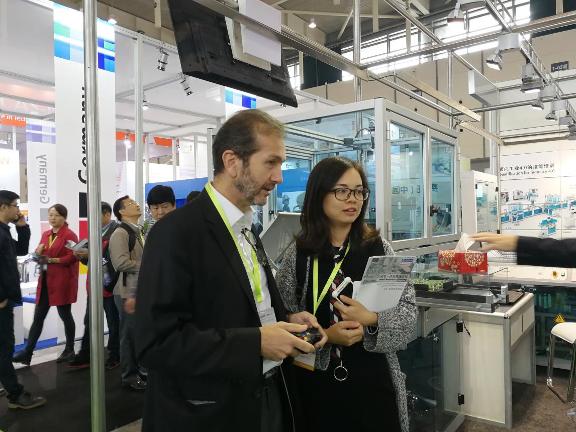 2017年10月19日上午,“Education+2017世界职业教育大会暨展览会”在南京国际博览中心1号馆盛大召开。本次大会由德国斯图加特展览公司、中国职业教育对外合作联盟、中国机械国际合作有限公司、世界职业教育大会暨展览会组委会联合主办,吸引了大量优秀的中外企业、职业院校聚集于此,交流经验,寻求合作,共同进步。广东技术师范学院阮剑亮老师率职业技术教育学专业的7位研究生参加了会议。