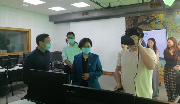 戴青云校长了解到同学们结合自身的专业方向,充分利用实验室的资源,学习掌握前沿的信息技术——虚拟现实(VR)、视频制作等技术,设计开发系列职业教育课程资源,给予充分肯定,同时给出指导意见。戴青云校长强调,一是要充分利用好实验室资源,搭建好团队,掌握好虚拟现实(VR)等前沿技术,培养好研究生的专业能力,提高学生职教资源设计开发应用水平;二是要加大实验室的开放及共享力度,建立实验室资源共享平台,在全校范围内开放,提高实验室利用率,实现实验实训资源利用的最大化;三是在现有实验室的基础上,联系全校各二级学院相关专业,就相关专业的课程内容,一起联合进行虚拟现实及视频教学资源的设计开发,服务课程教学改革,提高教学质量;四是要结合学校“十四五”发展规划,开拓思路,建立产业学院,加强与行业龙头企业的深度合作,探索产教融合的有效模式,为人才培养、服务社会和扩大学校影响力作出更大的贡献。
