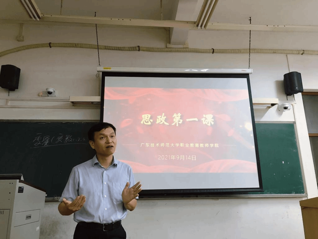 9月14日晚上,职业教育教师学院院长邓文新在第2教学楼403室为全体2021级研究生讲授主题为“以史为鉴,不忘教育者初心和使命”的思政第一课。