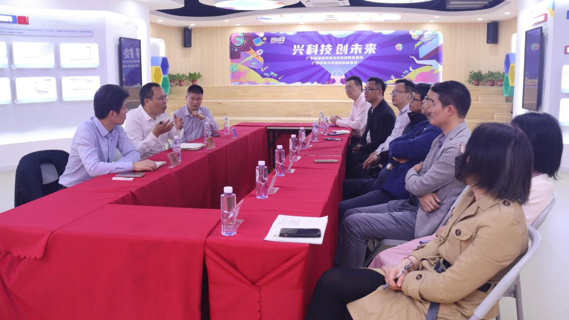 张旭日书记、熊华军院长一行首先参观并了解了广州密码营地信息科技有限公司的科普中心、学期社区和测评中心,对广州密码营地信息科技有限公司在广东省青少年客家教育基地、广州市科学技术普及基地、PAT青少年编程师资认证、中小学信息技术创客教育方向所积累的成果进行了充分的肯定。
