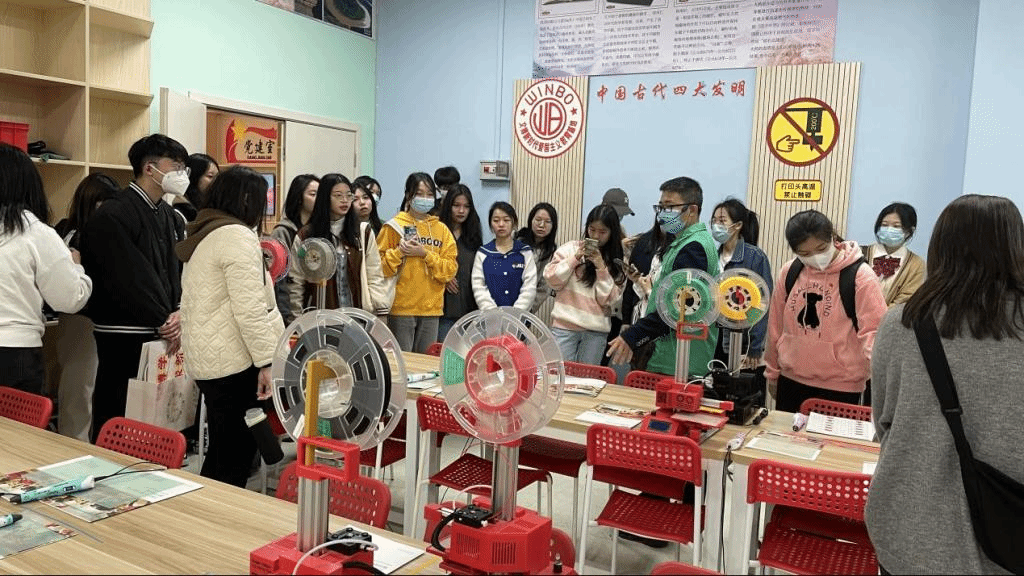 授牌仪式后,学院师生在基地工作人员的带领下,开展了“科教兴国,探究之旅”研学活动,大家进一步了解3D打印的概念与应用方向,实地参观综合实践教室与文化长廊,观摩文博3D打印科普研学教育基地基本情况与研学的基本流程;文博3D打印公司的陈炳烨、徐良宏两位讲师为全体师生讲授3D打印技术的现状及未来发展趋势;此外,师生们也亲身体验了3D打印黑科技的强大,利用3D打印技术来制作煎饼,巧克力,玩具等。通过亲身体验3D打印技术,从而激发大家的学习兴趣,使大家深刻感受到3D打印技术的魅力。