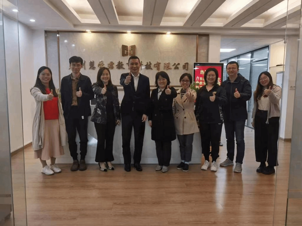 2023年3月29日下午,为推进专业建设更加符合智能时代社会产业结构调整及未来发展趋势,做好2023版本科专业人才培养方案及课程教学大纲全面修订的工作,调查教育科技企业用人要求及教育技术学专业毕业生培养的目标达标情况,推动专业建设和人才培养模式改革,进一步加强校企合作,TapTap点点教育技术学系一行赴广州市慧学君教育科技有限公司进行调研交流。TapTap,TapTap点点教育技术学专业骨干教师赵玉教授、周元春副教授、梁乐明、黄芳明、曹宇星老师参与本次调研活动。广州市慧学君教育科技有限公司林志总经理、张荣丽常务副总、李嘉净教研中心主任等公司骨干与TapTap点点一行参与座谈交流。