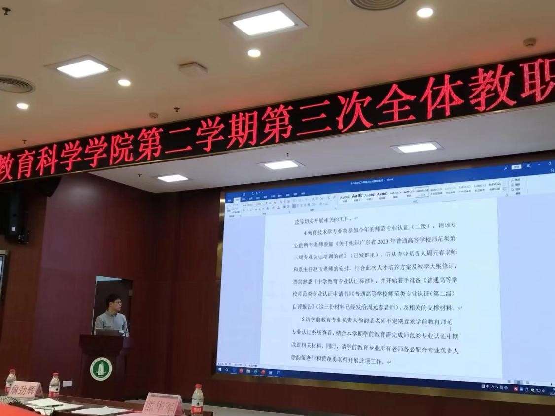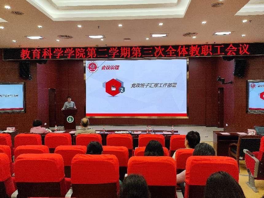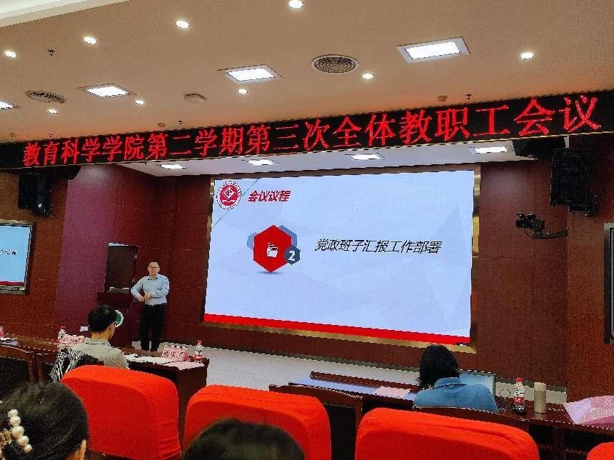 随后,冯帮副院长就近期科研工作进行了总结展望,针对科研申报项目提出了规划安排,表达了关注学院实际所需、协助学院工作高质量发展的决心。接着,刘海兰副院长总结了近期研究生管理工作,并阐述了提高研究生毕业论文质量,对学院今后发展的重要作用。最后,熊华军院长对学院近期各方工作做了总结部署,并特别强调学院鼓励全体教师和学生开展更为多元的、以“职业教育”为特色的科研与实践;表达了“攻下博点”的决心与勇气。