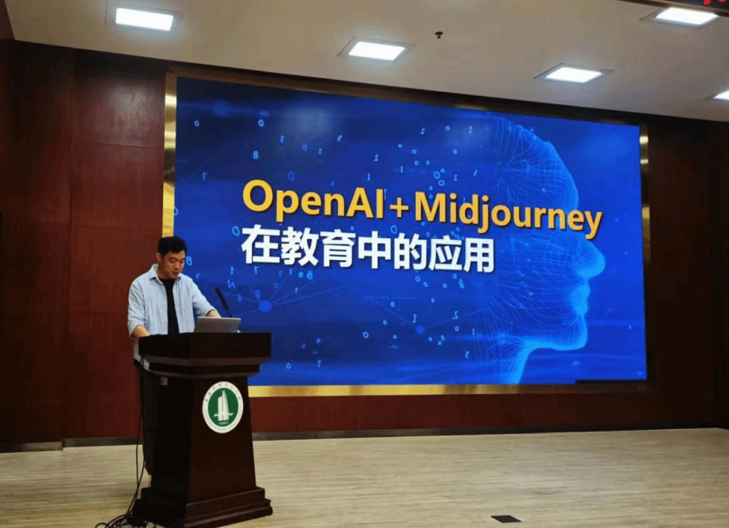 会议第三议程中,广州薪火互动科技有限公司CEO詹劲辉先生以及中瑆科技(广东)有限公司副总经理郭巍峰先生,分别分享了主题为“OpenAI+Midjourney在教育中的应用”和“OpenAI+ChatGPT为主线的数字媒体应用”的两场讲座。两场讲座同时在线上线下举行,由詹劲辉先生与郭巍峰先生亲自演示产品,引来专家、老师、学生们的热烈关注与交流讨论。