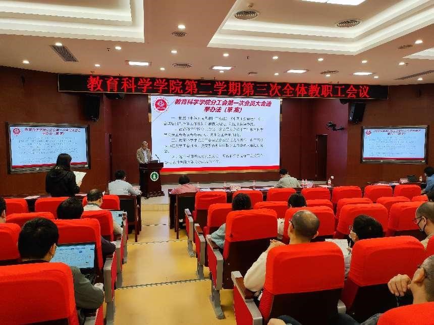 会议由张旭日书记、熊华军院长讲话开启。随后,会议进入第一议程,选举学院分工会委员会委员:展示监票人、候选人名单,发放投票,在场全体教职工参与了投票。会议第二议程中,由吴水爱副书记、冯帮副院长、刘海兰副院长,分别对学院学生工作、科研工作、研究生教学管理相关工作进行了汇报部署。