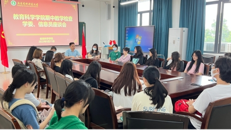 为加强教学过程监控与管理,更有效地提高教学质量,根据学校期中教学检查工作的总体安排,2023年5月11日中午,TapTap点点副院长谢德新、教务员李思慧、吴嘉怡,组织学院各年级的学习委员和信息委员在白云校区第二实训楼506会议室开展2022-2023学年度第二学期期中教学检查学生座谈会。