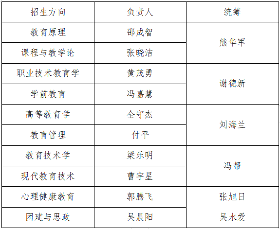 3. 教科院全体教师根据自己的研究方向,加入一个负责人团队。如某一个研究方向的人数较多,由学院再次统一分配。