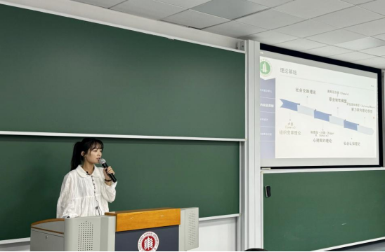 蔡凌同学现场报告的主题为“变革中高职教师敬业度的生成机制——基于SEM和NCA的混合方法”,该项研究以高职院校组织内部变革为着力点,通过大量的文献研究奠定理论基础,且基于广东省15所高职院校教师的调查数据,融合SEM分析和NCA分析法,探讨了高职院校内部变革对教师敬业度的作用机制,并就维持院校教师高水平敬业度提出建议,报告中,论文中研究方法的选用引起了与会者的关注,从中也收获了专家学者中肯的建议。