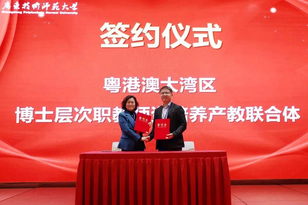 会议举行了战略合作签约和揭牌仪式。在全体与会嘉宾的共同见证下,粤港澳大湾区博士层次职教师资培养产教联合体成员单位正式签约,并正式揭牌成立粤港澳大湾区博士层次职教师资培养产教联合体。