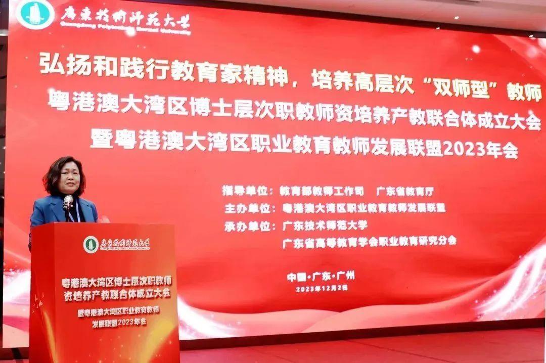 高素质“双师型”职教师资是职业教育高质量发展的关键支撑。12月2日,粤港澳大湾区博士层次职教师资培养产教联合体成立大会暨粤港澳大湾区职业教育教师发展联盟2023年会在广州举行。本次大会以“弘扬和践行教育家精神,培养高层次‘双师型’教师”为主题,来自全国各地的专家学者、企业高管、高校师生代表200余人参加了大会。