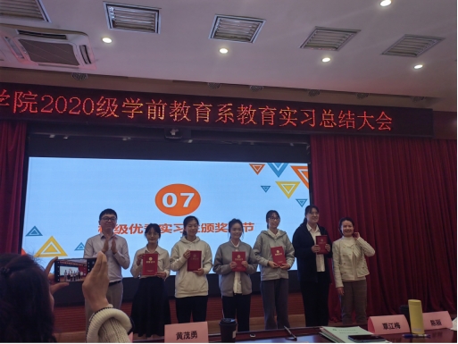 随后,经在场的教师进行充分讨论后,会议推选出共5位校级优秀实习生,他们分别是陈家兴、吴晓琪、李馨雅、黄青青和黄嘉迪同学。由黄茂勇老师、覃江梅老师等指导教师为优秀实习生颁发荣誉证书。