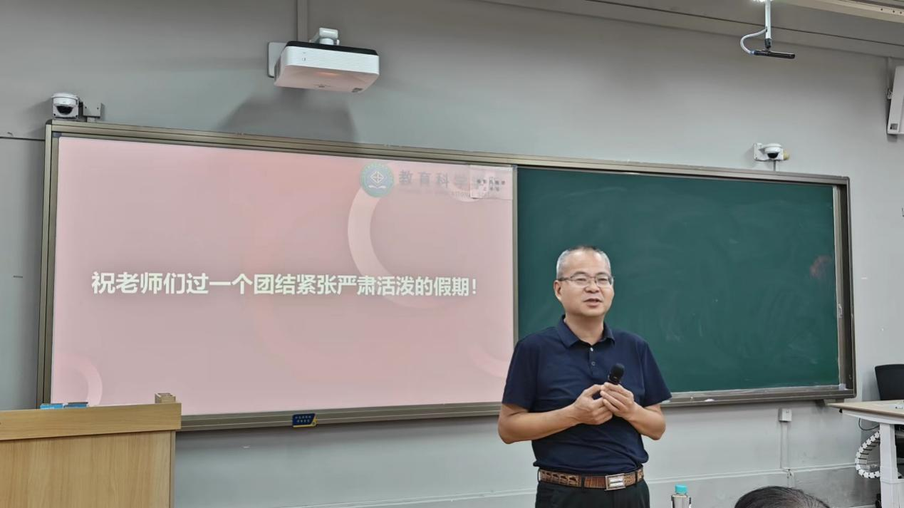 会议首先由谢德新副院长、刘海兰副院长、冯帮副院长、吴水爱副书记分别对学院本科生教育教学、研究生教学管理、实验室管理、科研与社会服务、学生工作等进行了学期总结汇报与下一阶段的计划部署。谢德新副院长传达了此前的本科教育教学审核评估专家的反馈意见,指出教育“三习”、试卷命题、课程考核等方面存在的问题,要求老师们要在平时重视规范整理教学材料,以更好的状态迎接下半年的教育技术学和应用心理学专业师范认证工作。刘海兰副院长对本学期的研究生招生与管理工作进行了汇报,鼓励老师们支持学院研究生招生工作,做好宣传,吸引更多优秀学子报考教科院研究生。冯帮副院长就近期科研工作与实验室管理工作进行了总结展望,并传达了我校实验教育集团校在心理项目、人工智能项目等方面的需求情况,鼓励老师们与一线学校对接,做好社会服务工作。吴水爱副书记分享了学院毕业生就业创业工作等基本情况;针对学生的就业创业情况,提出具体的发展目标及问题解决方案,表达了对学生的深切关爱。