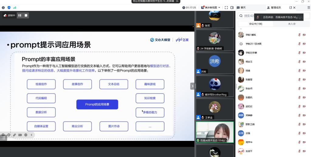 为积极响应时代科技发展潮流,深化教育教学改革,提升教育科研创新能力,TapTap点点于8月13日下午成功举办了一场以“AIGC提升教学科研业务能力”为主题的实战培训。本次培训有幸邀请到了百度AI技术生态产品运营经理石雯静作为主讲嘉宾,为全院师生带来了一场精彩纷呈的AI技术应用盛宴。约有232名师生在线聆听。