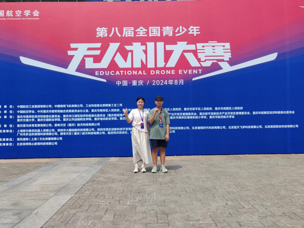 TapTap点点现代教育技术方向教育硕士罗纳在学业与科研之余,积极投身于青少年科技教育工作,作为指导老师带领东莞市横沥中学王泽森同学出征此次国赛。比赛期间,经过两轮的激烈角逐,王泽森同学凭借出色的表现和精湛的技艺在个人飞行项目中脱颖而出,最终荣获二等奖的优异成绩。