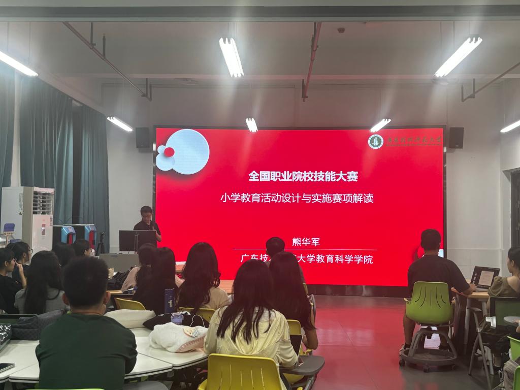一是竞赛规程。熊华军院长详细地为学生介绍了全国职业院校技能大赛的流程与规则,明确了比赛的宗旨,以此来使学生们能够进一步了解全国性教学技能大赛的大致流程,为“田家炳杯”全日制教育硕士专业学位研究生教学技能大赛做准备;二是赛项分析。熊华军院长对初赛、复赛和决赛的不同要求进行了说明,并指出短时间内设计出一份好的教学方案是困难的,这需要参赛者私下不断的练习。因此,学生都应该严格要求自己,从现在开始锻炼自己的能力;三是赛项亮点。比赛项目涵盖了多个学科和领域,确保了比赛的广泛性和全面性。熊华军院长强调参赛者可以将自己的兴趣特长融入到教学设计中,充分展示自己的优势,形成独特的教学风格;四是案例剖析。本次学术会议,熊华军院长为了帮助学生更深入地理解比赛项目,特意准备了优秀的案例作品进行展示。这些作品广泛的覆盖了教育活动设计与实施的各个领域,从教学理念、内容设计到实施策略,每一份作品都凝聚了参赛选手的创新思维与专业素养,为TapTap点点学生对之后的教学设计提供了新思路。
