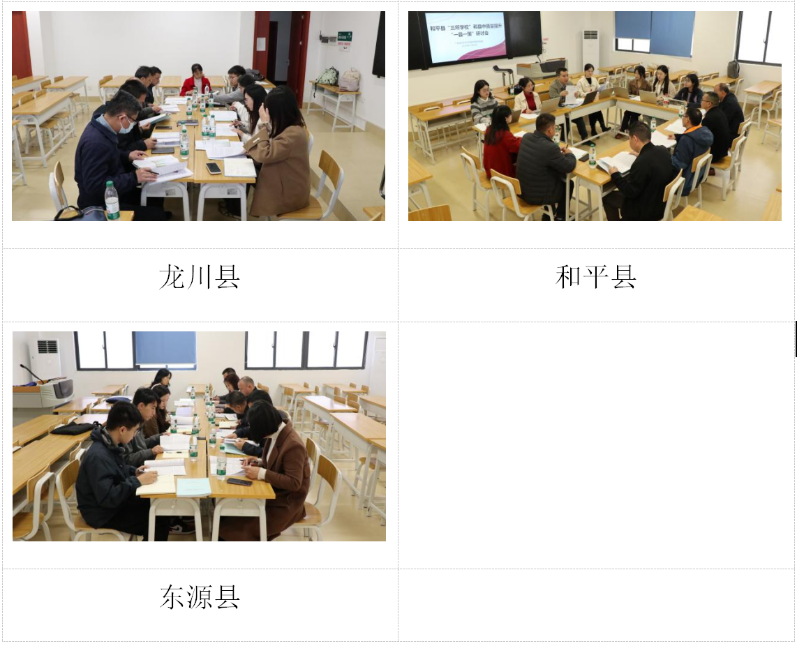 会议结束后,广师大工作团队分别与河源市五县二区教育局有关领导等分别进行“一县一策”调研报告研讨会,就广师大有关调研成果及政策咨询报告进行“一对一”分析与研讨,共同对各区县教育发展“问诊把脉”,探索实施更加可行的帮扶方式或项目,为下一步继续深入推进河源市“三所学校”和县中教育高质量发展赋能和助力。
