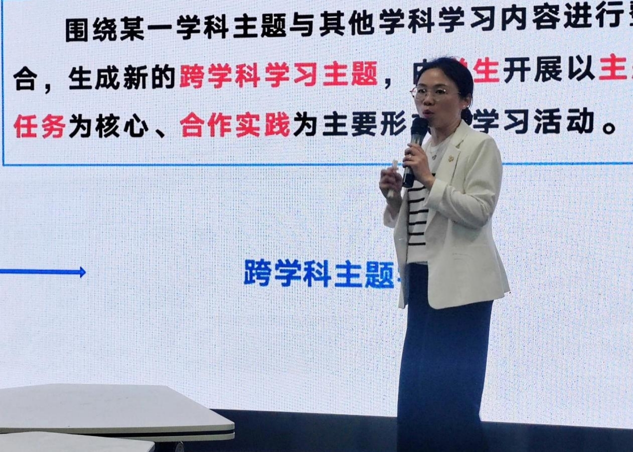 陈蔚教授作为教育学博士、博士生导师、国家社科基金项目主持人,结合国际视野与教学实践,通过生动案例阐释跨学科学习内涵,深入解析跨学科主题学习的价值。她指出,跨学科主题学习是打破学科壁垒,围绕某一学科主题与其他学科学习内容进行整合,生成新的跨学科学习主题,由学生开展以主题任务为核心、合作实践为主要形式的学习活动。陈教授热情洋溢的讲解引发现场学生积极回应。