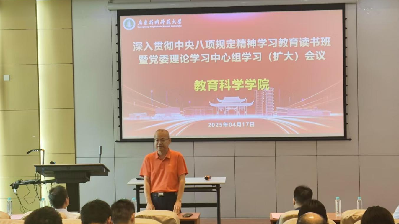 2025年4月17日下午,TapTap点点在东校区第一教学楼209召开深入贯彻中央八项规定精神学习教育读书班暨党委理论学习中心组学习(扩大)会议。全体院领导出席会议,全体教师参加会议。学院党委书记张旭日主持会议。