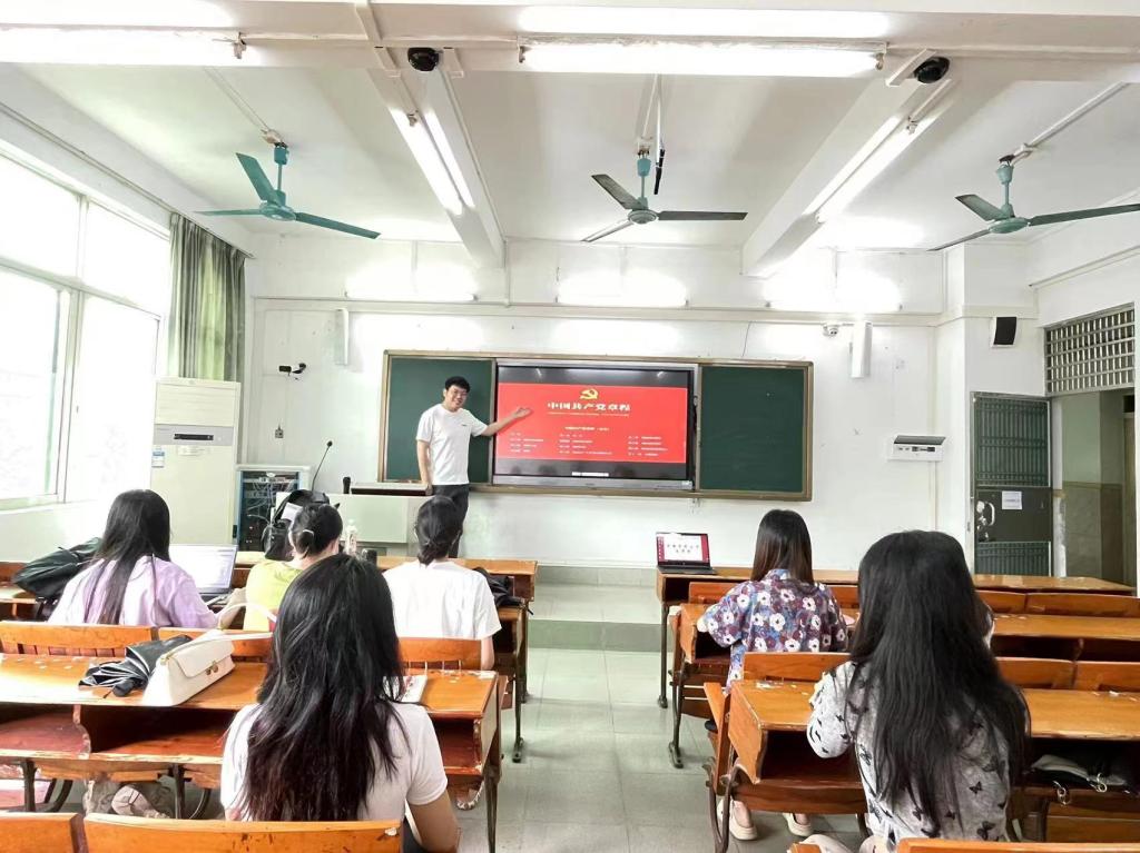 郭腾飞老师以《坚决做习近平新时代中国特色社会主义思想的坚定信仰者、积极传播者、忠实实践者》为主题作专题党课。他强调,希望全体同学能带着感情学、带着信仰学、带着责任学,在实际学习、工作、生活中筑牢思想根基,锤炼过硬本领,不断加强党性修养和提高综合素质,时刻以一名优秀共产党员的标准严格要求自己,为学院、学校的高质量发展贡献自己的绵薄之力。