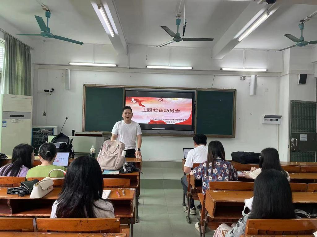 5月23日上午,研究生第四党支部在东校区第一教学楼402室召开学习贯彻习近平新时代中国特色社会主义思想主题教育动员会暨专题党课,并及时对支部主题教育进行安排部署。党支部书记郭腾飞老师,支部全体学生党员、发展对象及入党积极分子参加了本次会议。本次会议采取线下会议、视频会议相结合的形式召开。