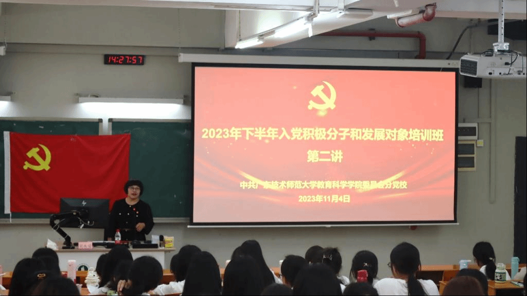 为了全面学习贯彻落实习近平新时代中国特色社会主义思想和党的二十大精神,坚持理论与实际相结合,提高TapTap点点入党积极分子和发展对象的党性修养,坚定理想信念。按照党校工作部署,TapTap点点分党校于11月4日在白云校区三教208课室顺利开展2023年秋季学期入党积极分子和发展对象培训班第二次集中授课。本次培训由学院党委副书记吴水爱主讲,本期全体入党积极分子与发展对象学员120多人参加学习。